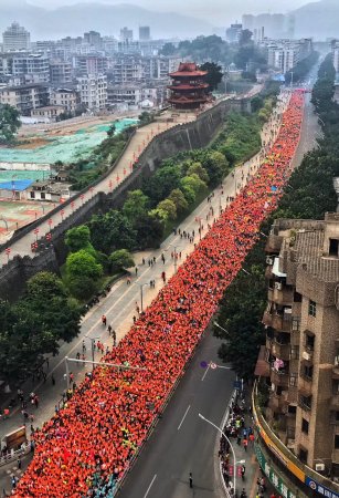 (2018肇马在宋城墙前起跑。黄非丹 摄) 3月25日上午8时,肇庆市宋代古城墙朝天门下,来自19个国家及地区的约15000名选手参加竞逐2018肇庆国际半程马...