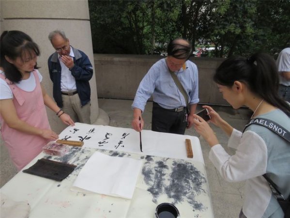 (9月19日上午,获奖书家送书法、精品佳作赠市民文化惠民活动在陕西省图书馆门前举办) 中国文化观察网讯(秦毅)请老师给我写一幅上善若水吧9月19日,陕西省图书馆...