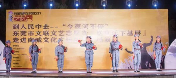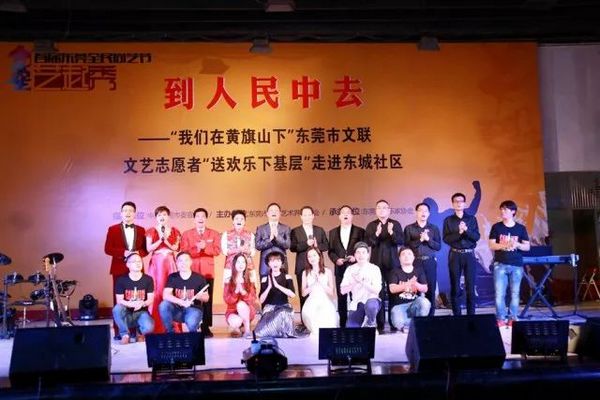 全体演员合影 10月27日晚,秋高气爽,东莞东城梨川社区文化广场汇聚成了歌声与欢笑的海洋。我们在黄旗山下东莞市文联文艺志愿者送欢乐下基层专场音乐晚会正热烈举行,...