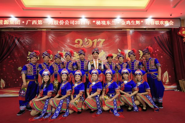 刘三姐文化节合影留念 (通讯员 覃源) 2018年1月25-27日,广西第一湾股份副总裁董月英代表集团及股份公司和东昇国际大酒店,副总经理黄文代表东兰民间铜鼓收...