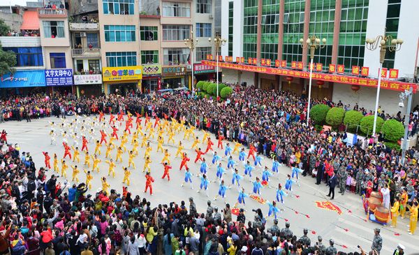 图为观众围观壮拳表演 农进欢摄 广西百色市德保县2017年红枫文化旅游观赏月活动暨首届脐橙节于12月1日至31日举行。在2日的活动开幕式上开展了声势浩大的民俗巡...