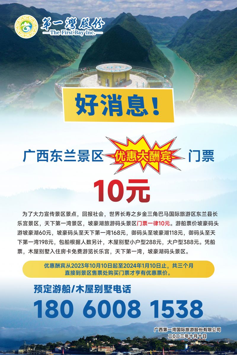 好消息 即日起广西东兰景区优惠大酬宾门票低至10元 为了大力宣传景区景点,回报社会,世界长寿之乡金三角巴马国际旅游区东兰县...