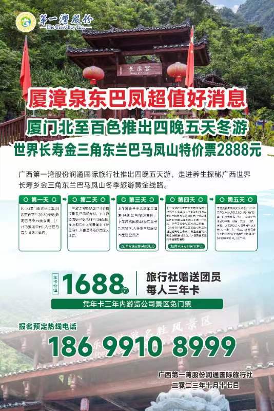 厦门北至百色推出四晚五天冬游世界长寿金三角东兰巴马凤山特价票2888元 广西第一湾股份润通国际旅行社推出四晚五天游,走进养生探秘广西世界长寿乡金三角东兰巴马凤山...