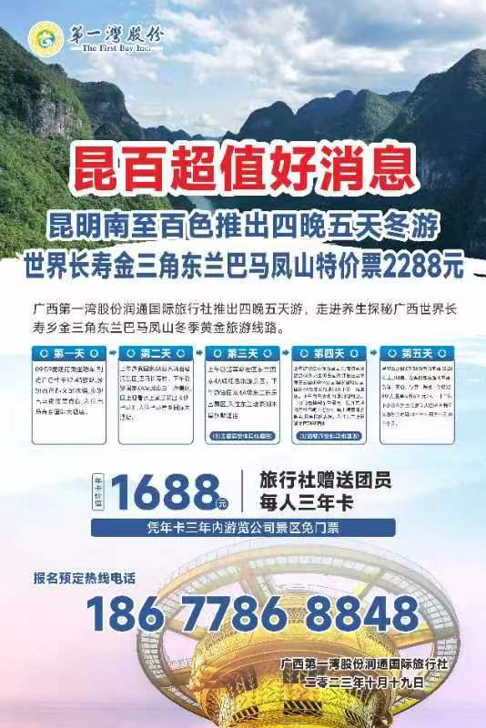 超值好消息广州南至百色站推出四天三晚冬游世界长寿乡巴马东兰特价票1688元 广西第一湾股份润通国际旅行社推出四天三晚游,走进养生探秘广西世界长寿...