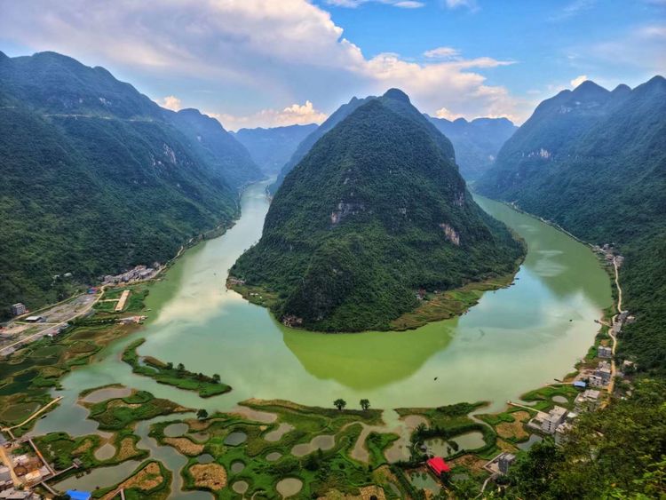 广西东兰红水河第一湾的传说 岑福山 红水河,是广西母亲河。属于珠江水系,源头在云南省曲靖市的马雄山,海拔高达一千...